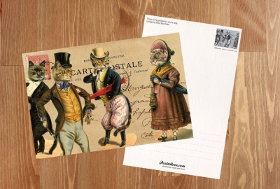 Tauchen Sie ein in eine verspielte Katzenwelt mit der Postkarte 'Three gentlemen and lady', kunstvoll illustriert von Ewa Słocińska. Das charmante Collagenmotiv zeigt vier elegante Katzen mit viel Persönlichkeit und einem Hauch nostalgischer Eleganz. Gedruckt auf hochwertigem Karton, ist diese Karte ein Highlight für Sammler, Katzenliebhaber und alle, die besondere Post verschicken möchten. Ein kleines Kunstwerk für Ihre Sammlung oder zum Verschicken mit Freude.