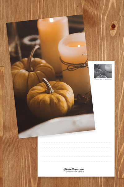Genießen Sie den Zauber des Herbstes mit der Postkarte „Kürbisse und Kerzen“. Das stimmungsvolle Motiv zeigt leuchtende Kürbisse und warme Kerzenlichter – perfekt für Sammler, Postcrosser und alle, die gerne liebevolle Grüße verschicken. Die hochwertige Karte verbindet herbstliche Gemütlichkeit mit künstlerischem Flair und sorgt dafür, dass jede Nachricht zu einem besonderen Erlebnis wird. Ein kleines Kunstwerk für Ihre Post!