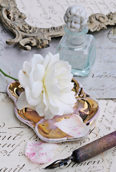 Amor und alte Briefe Postkarte